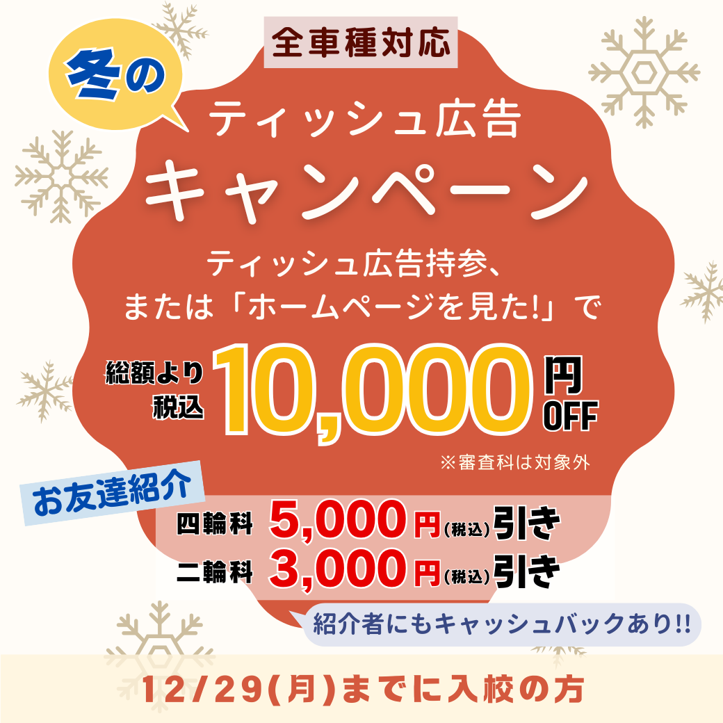 株式会社シップスがデザインした教習バックを、入校するお客様全員に入校特典としてお配りいたします。 ⇒ [ 詳細 ]